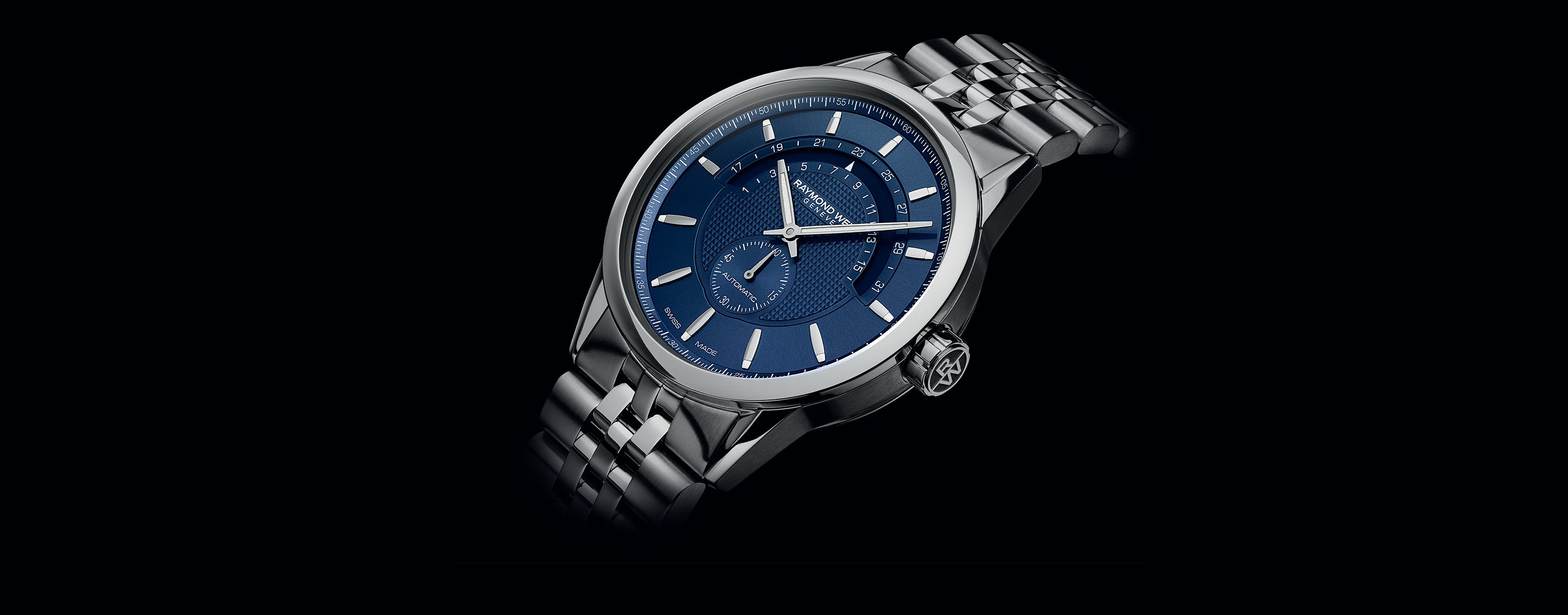 Made for both aesthetic and function, they hold a 38 hours power-reserve, are 10 ATM water-resistant and display RAYMOND WEIL’s signature RW Monogram on the crown. Available in either polished stainless steel with blue dial and silver indexes or two-tone with black dial and yellow gold coloured indexes and hands with luminescent white Super-Luminova®, these new timepieces complete the range of the freelancer RAYMOND WEIL’s flagship collection with an urban and modern personality.
