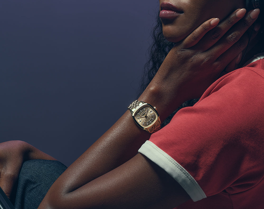 34 x 34 mm, champagnerfarbenes Zifferblatt