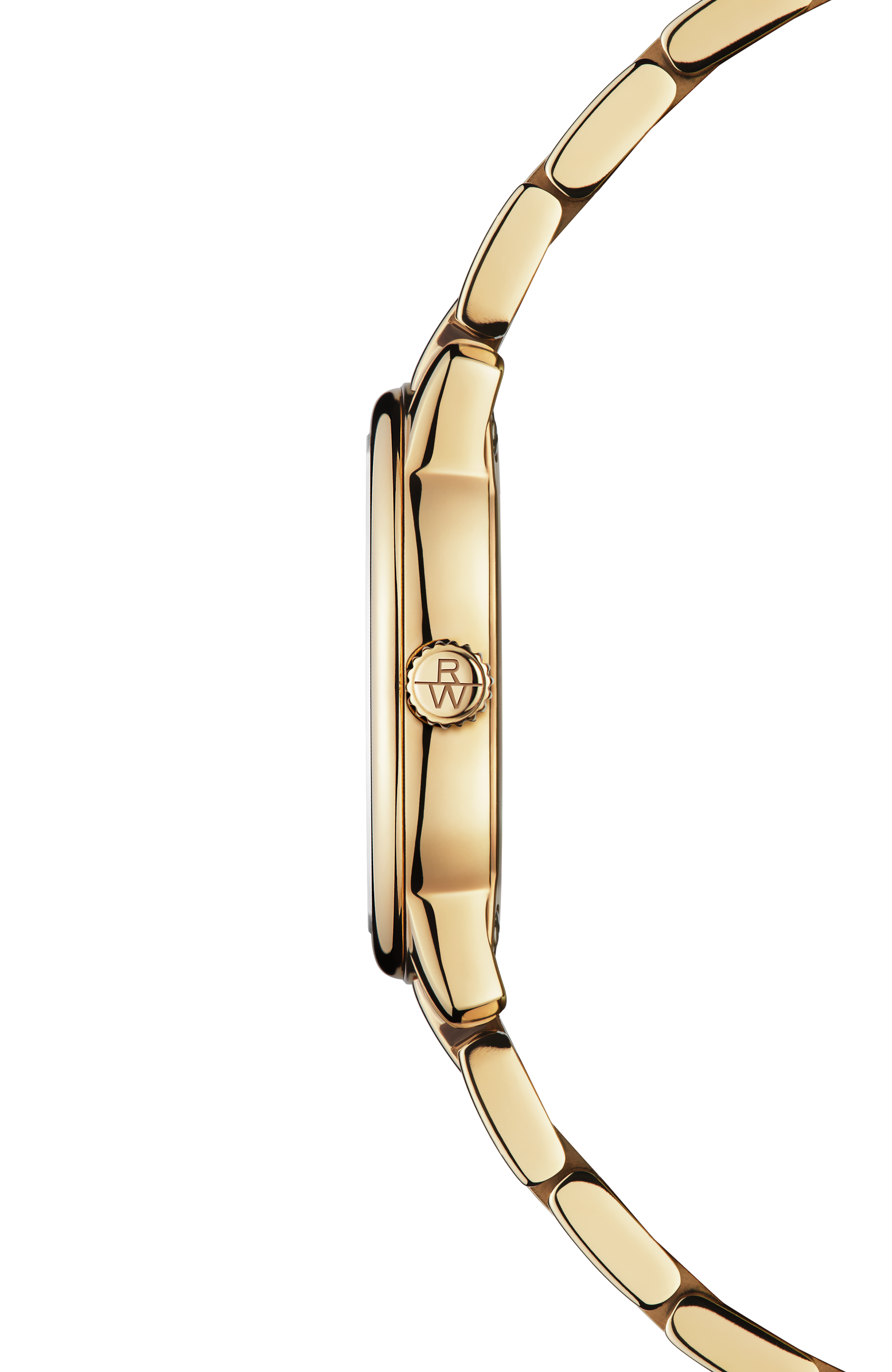 - Gehäusematerial: Edelstahl mit Gelbgold-PVD-Beschichtung