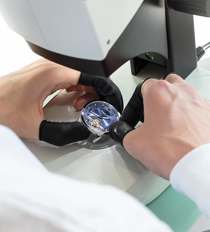 Within approximately five business days, an email or a written confirmation of your polishing service will be provided to you, as well as any estimates for recommended repairs. Once approval of the service(s) is received, the polishing is usually completed within five business days. *If a servicing is also approved, the timeframe will be indicated in the estimate. Polishing costs 160 CHF and there is a 25 CHF fee for return shipping. Timepieces from the noemia collection are unable to receive polishing services.