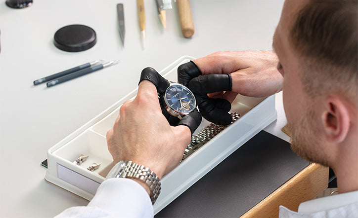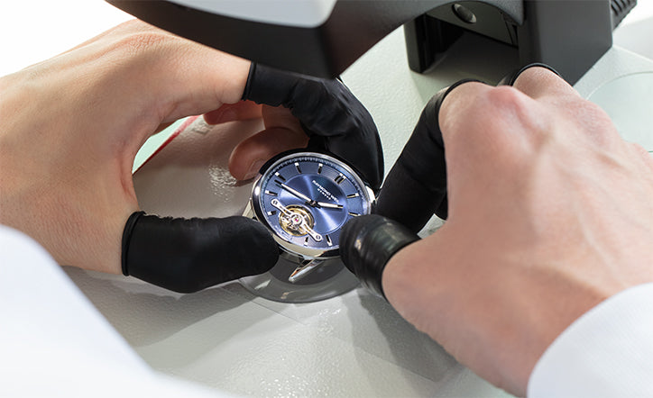 Once your watch has been received (see below for submission information), it will be tested for water resistance to ensure that we can complete the cleaning and polishing process. If it needs new gaskets for water resistance, we will contact you. Please note: Our technicians will also provide a complimentary initial evaluation to ensure your RAYMOND WEIL timepiece is in the best possible condition.
