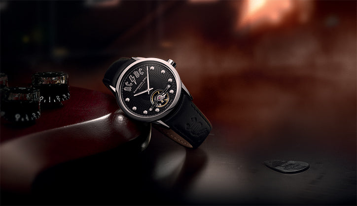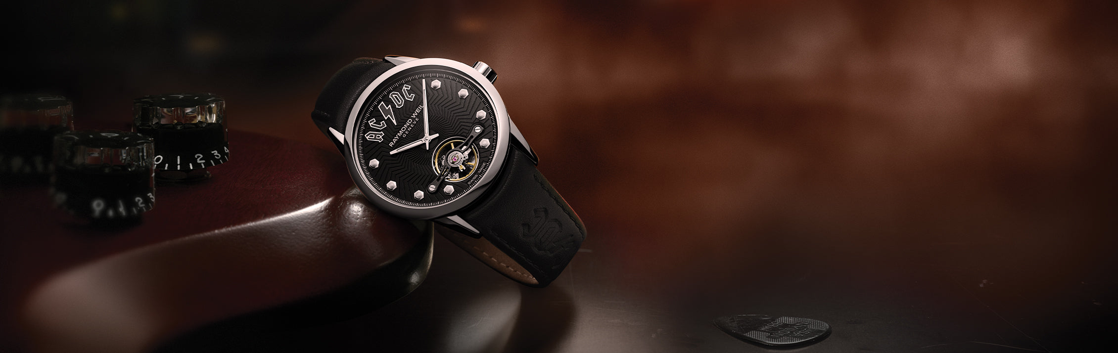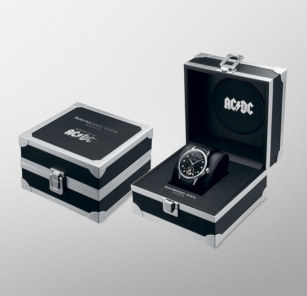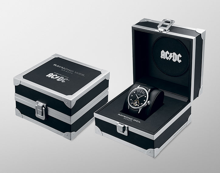 RAYMOND WEIL is proud to unveil a collaboration in its ‘Music Icons’ series, the freelancer AC/DC Limited Edition, paying tribute to legendary Rock n’ Roll Hall-of-famers, AC/DC. This exclusive watch incorporates the in-house developed Calibre RW1212 movement, allowing onlookers to view the rocking “Alternating Current/Direct Current” balance within the timepiece.