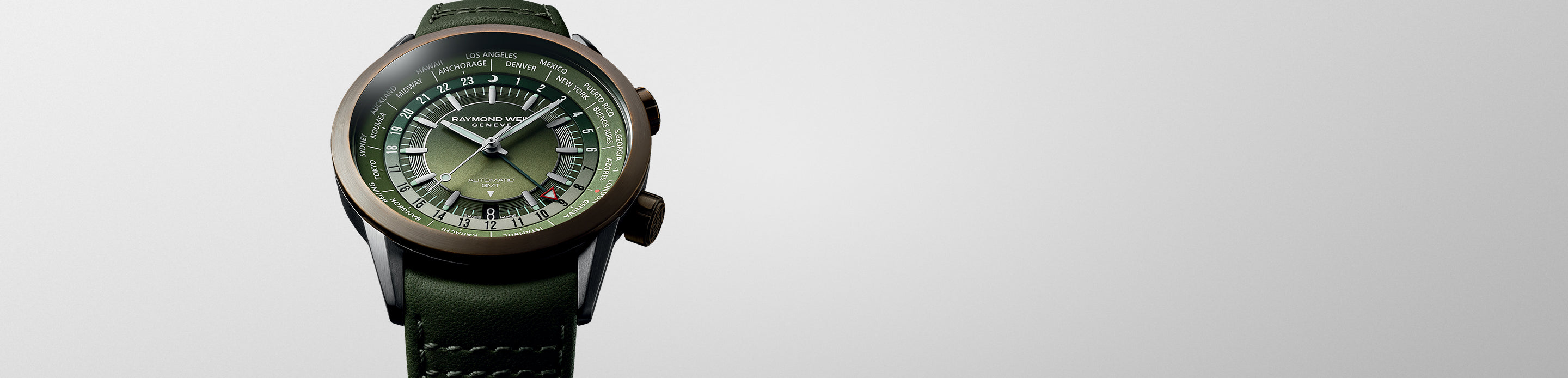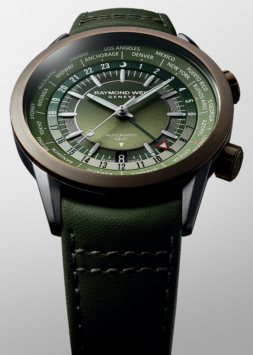 Montre GMT Worldtimer Freelancer cuir vert pour homme, 41 mm Montre GMT Worldtimer Freelancer cuir vert pour homme, 41 mm Montre GMT Worldtimer Freelancer cuir vert pour homme, 41 mm