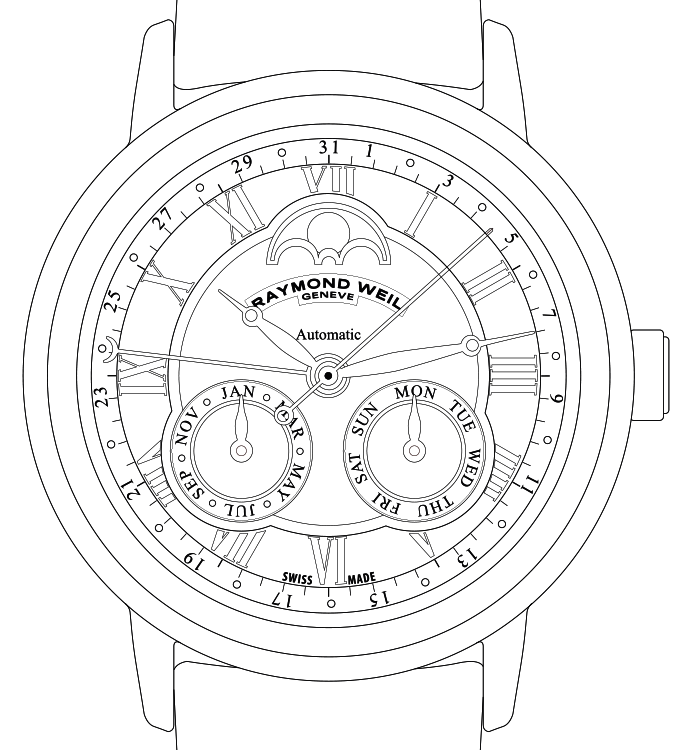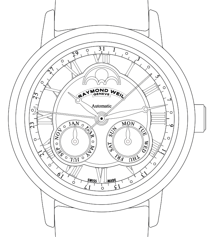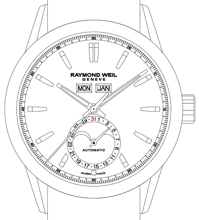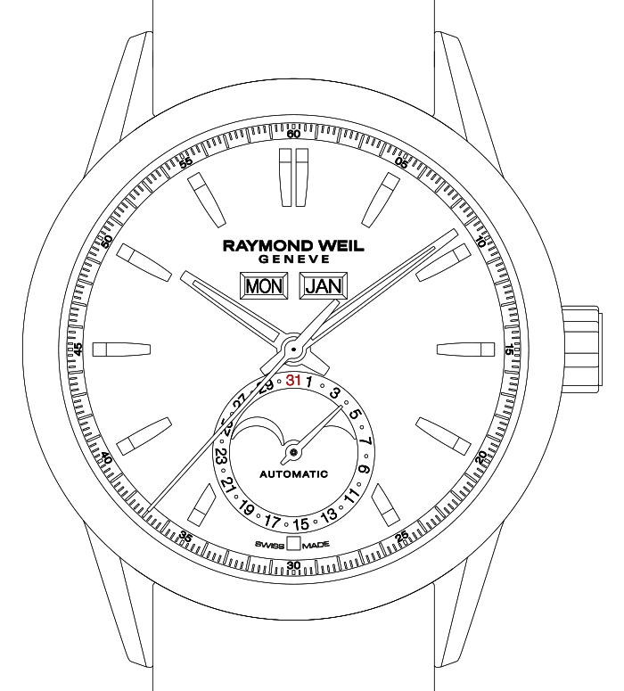 With date hand / with date hand and moon phase