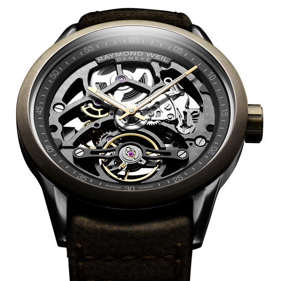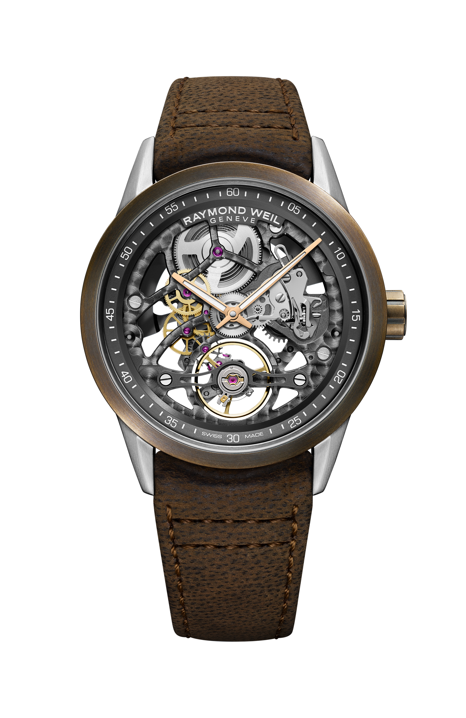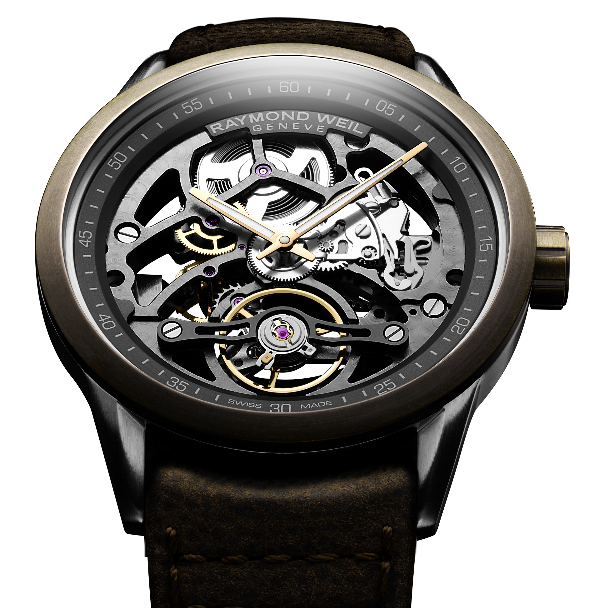 Combining materials from the past with Swiss precision craftsmanship of today is the latest freelancer skeleton Calibre RW1212 from RAYMOND WEIL.