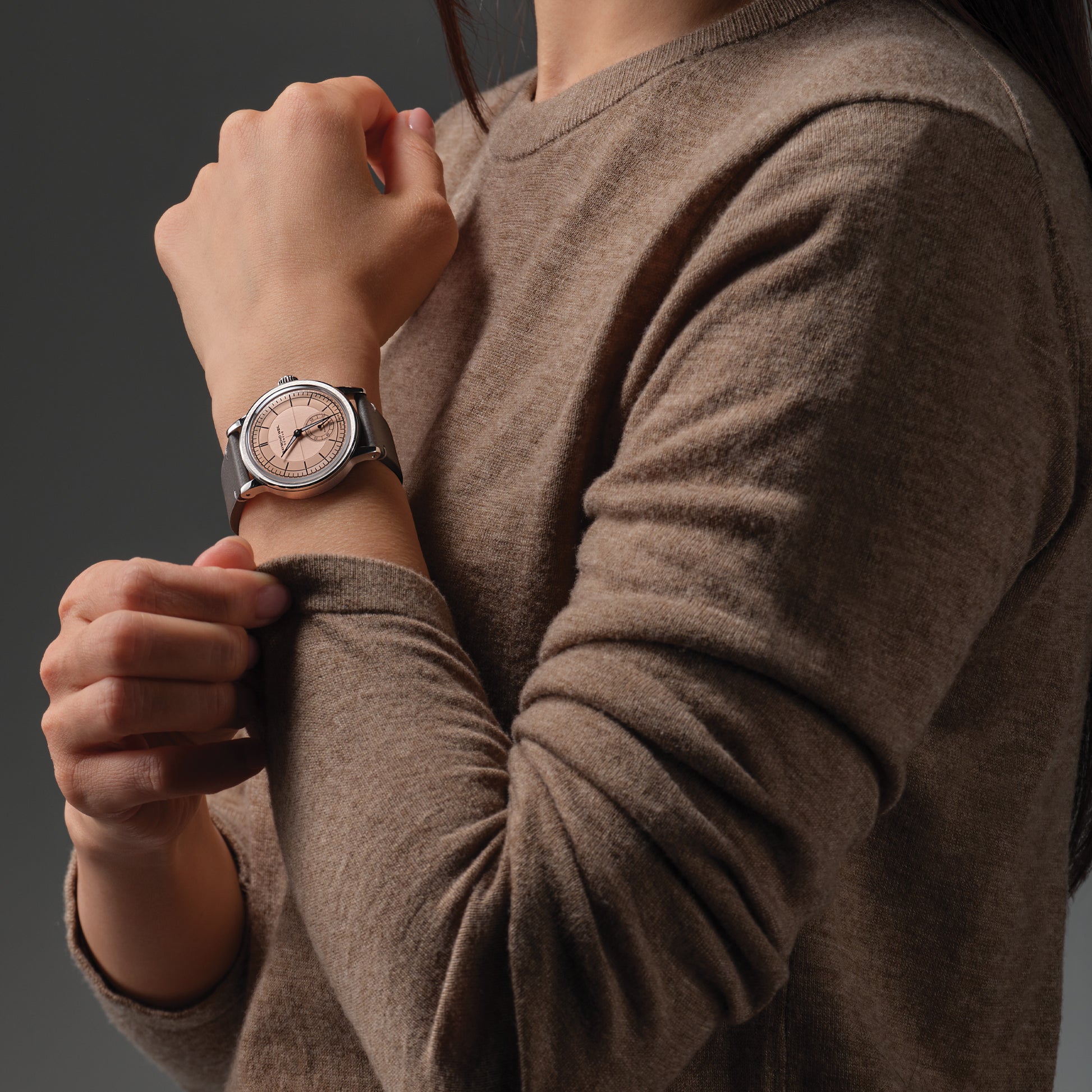 The salmon dial, freshly contemporary but also classically timeless, is being added to the Millesime collection – a fitting follow-up to the inaugural model that won the watch industry’s coveted Challenge Prize at the last Grand Prix d’Horlogerie de Genève. Now available in a new 35mm diameter, this refined timepiece continues to embody the perfect balance between heritage and modern elegance.