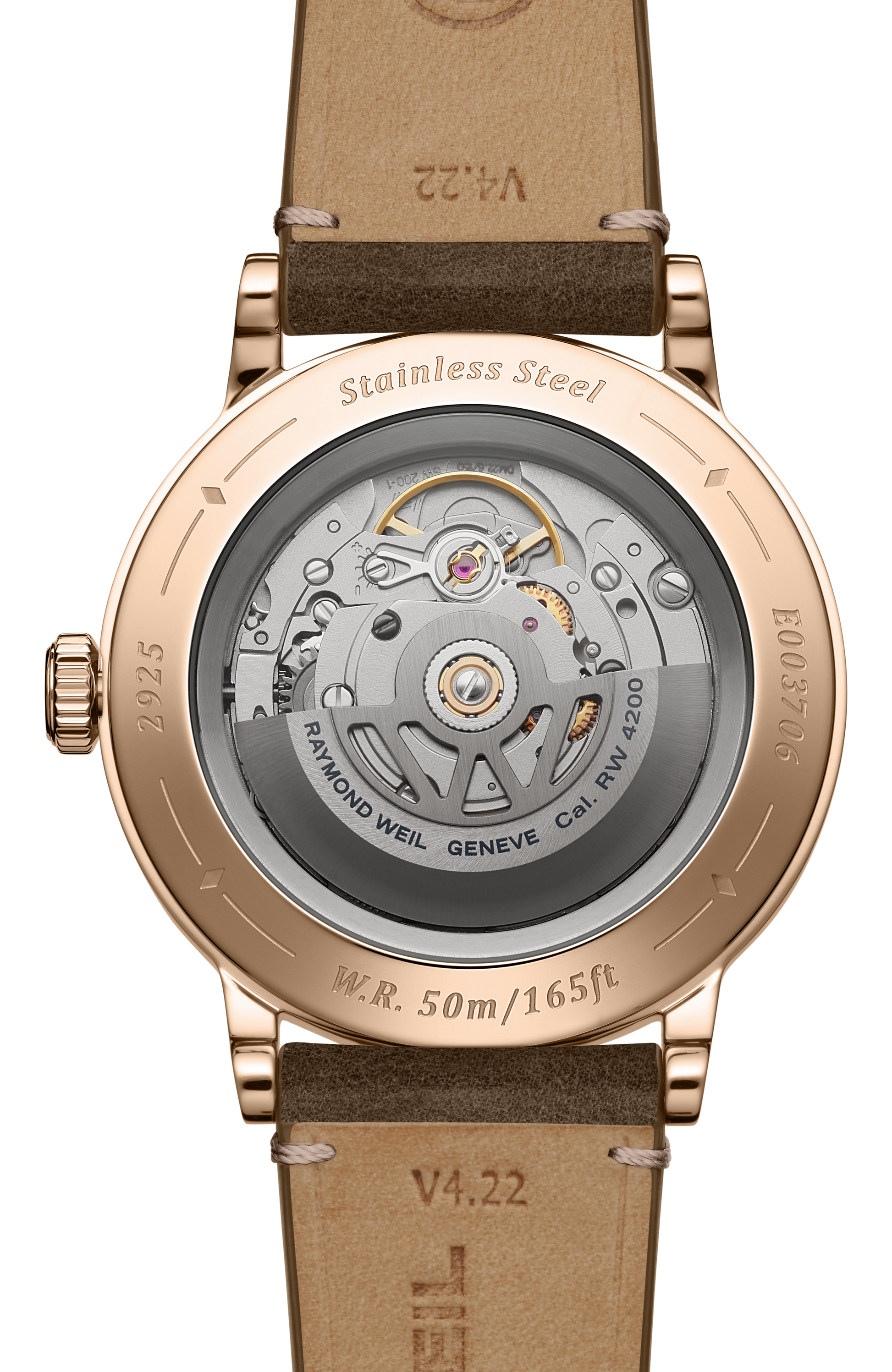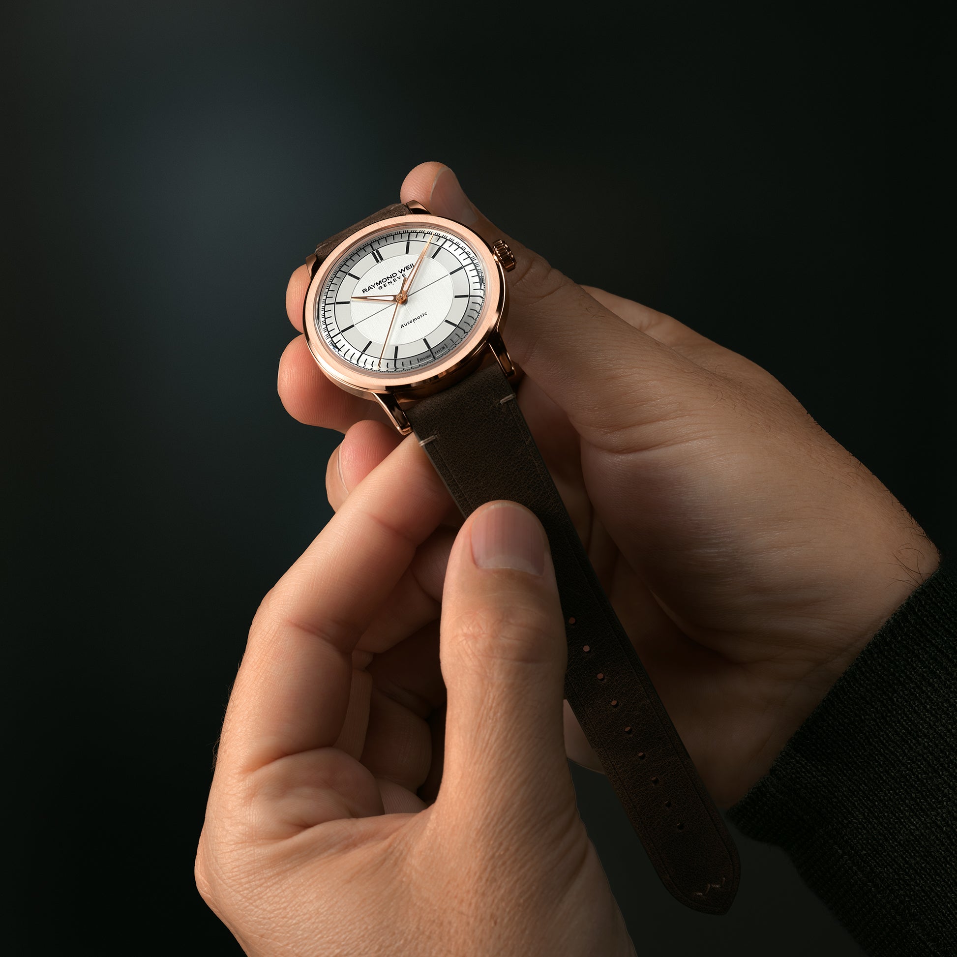 A sapphire caseback affords sight of the self-winding movement within and the “W-shaped” oscillating weight, RAYMOND WEIL’s horological signature. Offered in a selection of dial colours, each model is paired with a colour-coordinating genuine calf leather strap with a unique W-stitched detail.