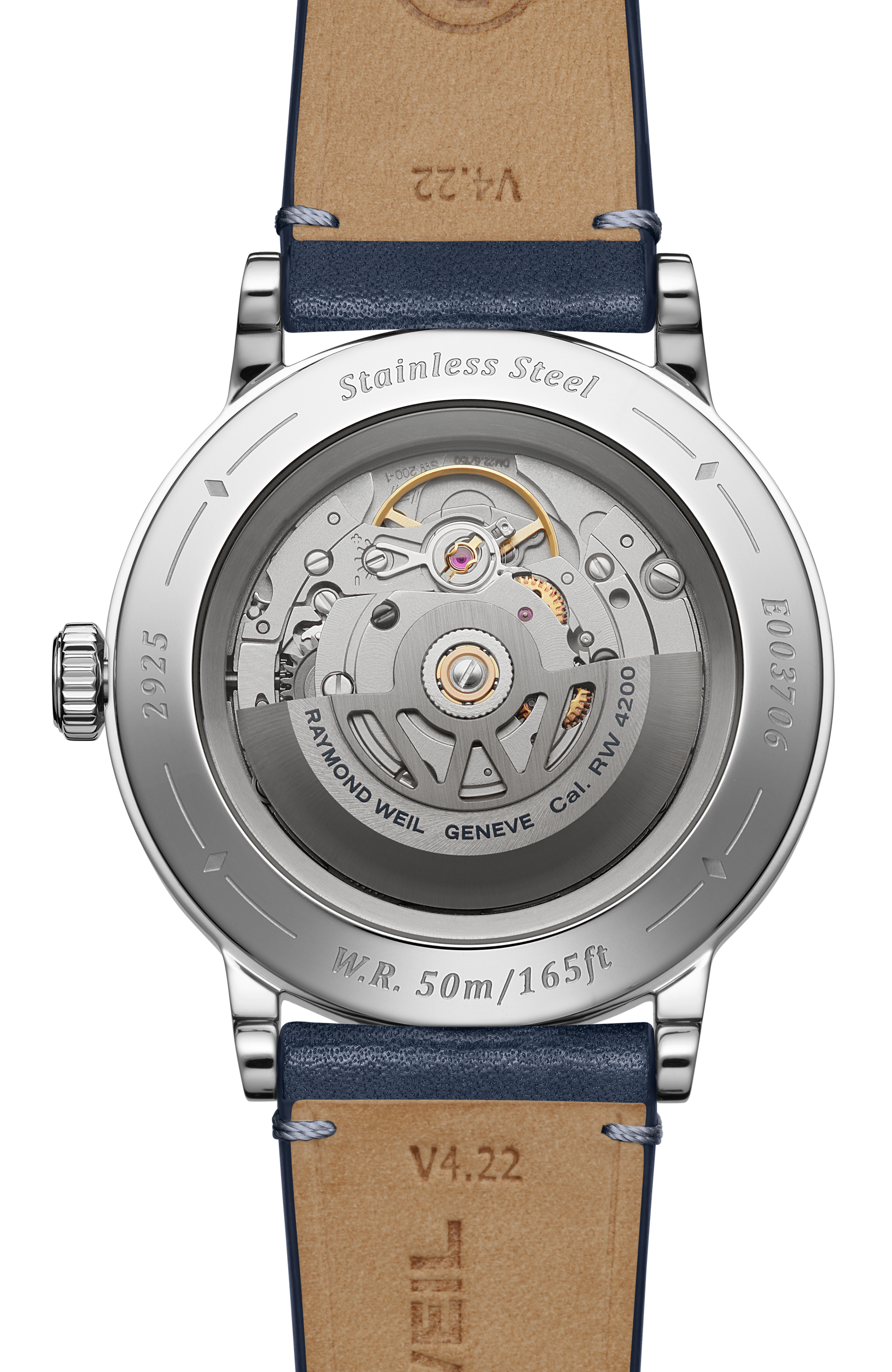 透底表背以蓝宝石水晶制成,可欣赏自动上链机芯的运转,以及蕾蒙威标志性的“W”形摆陀。系列提供多款表盘配色,每一枚腕表均搭配与之呼应的真皮小牛皮表带,并饰以独特的“W”形缝线细节。
