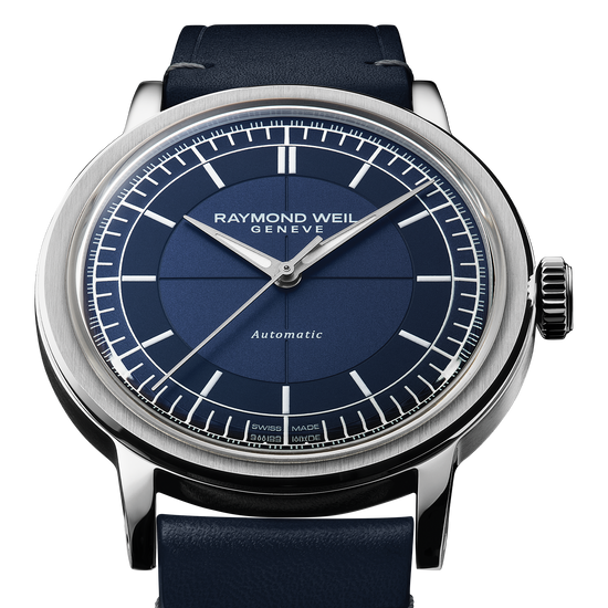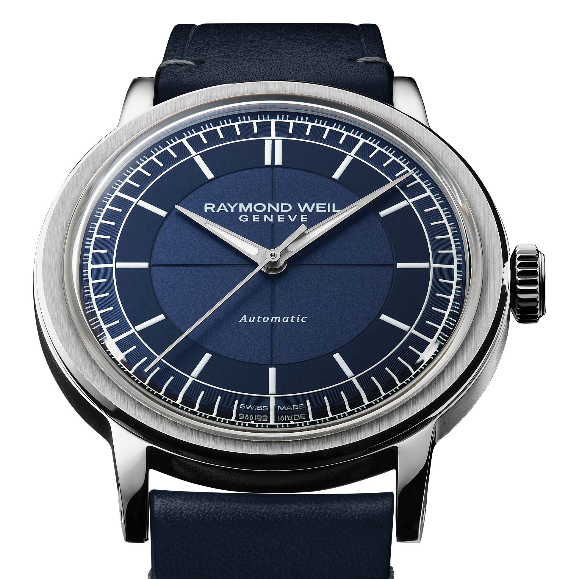 蓝色表盘位于复古风格的蓝宝石玻璃镜面之下,工艺精细至臻。银色指针覆以Super-LumiNova®夜光涂层,清晰指示时分。区隔式表盘将时、分、秒分别呈现在独立刻度轨道上,提升可读性。